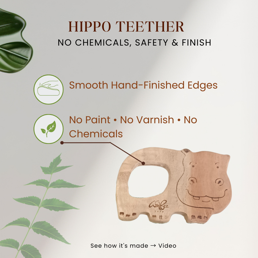 <li>Each Woodbee Toys teether is crafted from a single piece of neem wood and carefully sanded so all edges are smooth, splinter‑free, and gentle on delicate gums. The design avoids small detachable parts, batteries, and unnecessary plastic, supporting safer, more mindful play.</li>
