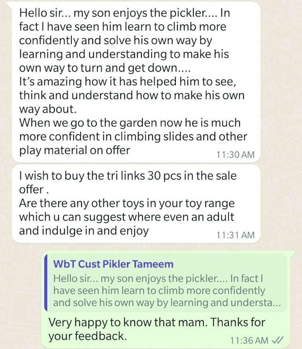 <p><strong>Assembly : </strong>Available insturction is available as pdf download. We will also assist in assembly through WhatsApp video call. Click the link to download the assembly instruction. <span style="color: #ff0000;"><a style="color: #ff0000;" title="Assembly Instruction" href="https://cdn.shopify.com/s/files/1/0607/9886/1561/files/Pikler_Triangle_-_Assembly_Instructions.pdf?v=1649947260" target="_blank">Assembly Instruction</a></span></p>