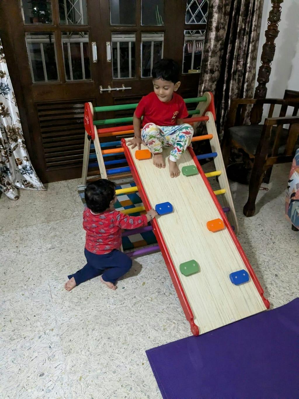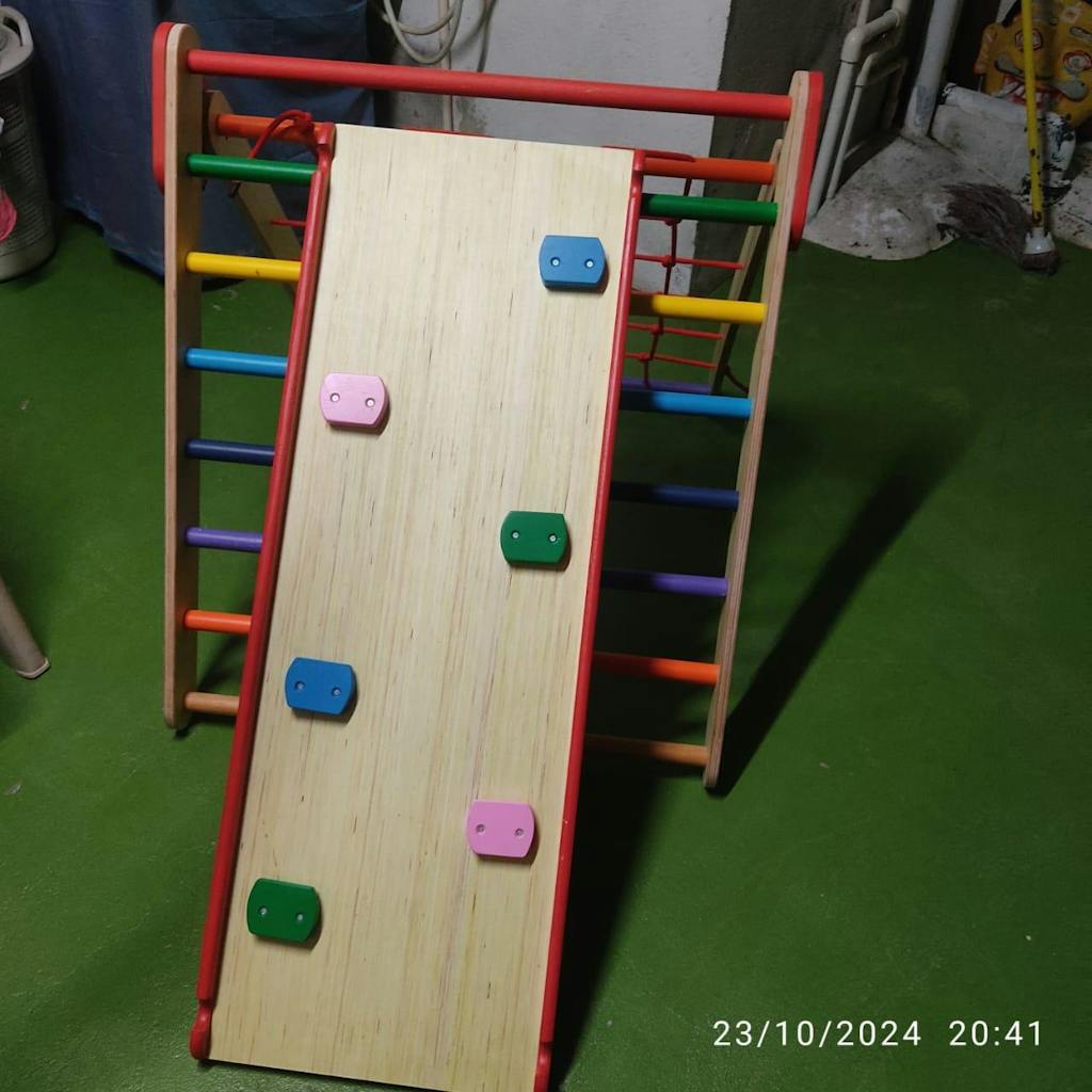 <p><strong>Play items : </strong>Foldable Pikler Triangle, Reversible Slider/Ramp</p>