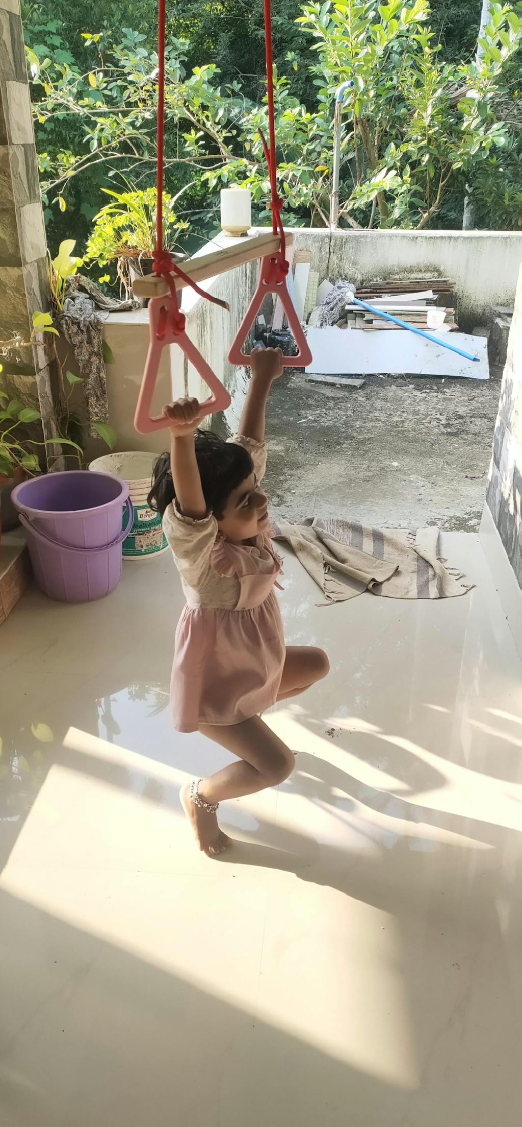 - The trapeze swing bar can be used for the little acrobats in burning energy thereby increasing power.