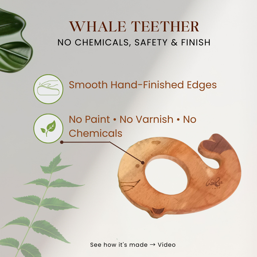 <li>Each Woodbee Toys teether is crafted from a single piece of neem wood and carefully sanded so all edges are smooth, splinter‑free, and gentle on delicate gums. The design avoids small detachable parts, batteries, and unnecessary plastic, supporting safer, more mindful play.​</li>