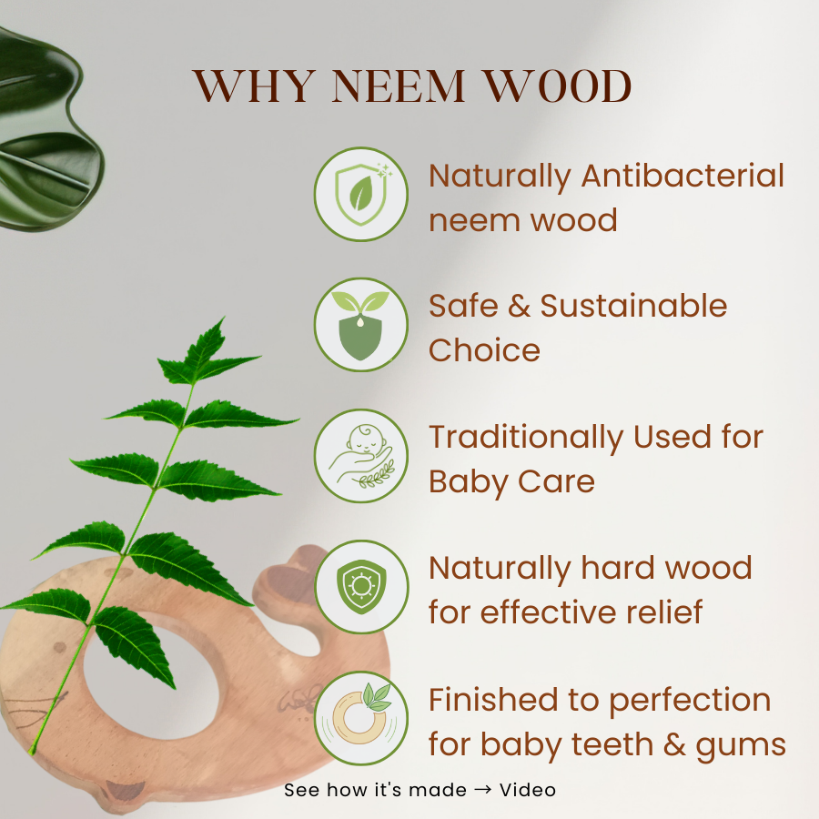 <li>Neem has been used traditionally for its soothing, naturally antibacterial and antifungal properties, which makes it a thoughtful material for baby products when properly finished and cared for. Unlike many synthetic materials, solid neem wood does not rely on added gels, fragrances, or chemicals to feel comforting.​</li>