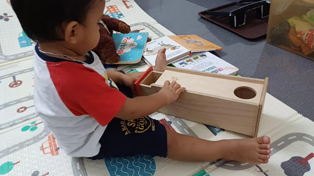 Imbucare is italian for 'post' like post a letter in the mailbox. An activity where the child is using his hands to put something into something, its called imbucare, like putting a ball into a box or a stone into a drawer or money into a piggy bank. Posting objects into the boxes is a natural sensory activity for young children aged 6 months to 12 months. It helps in the following ways